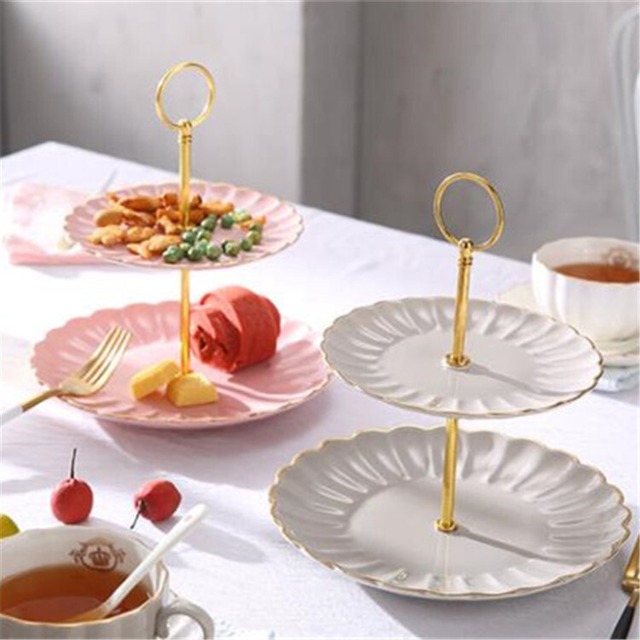 ダブルレイヤー デザートプレート セラミック ライトラグジュアリー フルーツプレート