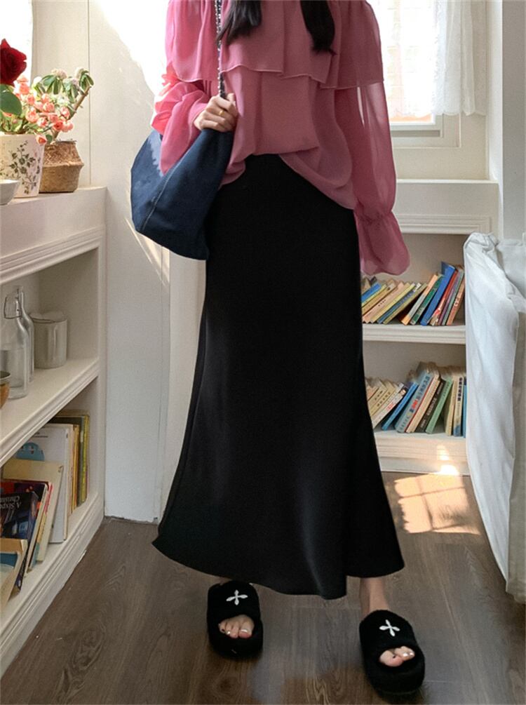 自分の恋愛 INSスタイル sweet系 サテン ロングスカート ハイウエスト フィッシュテールスカート