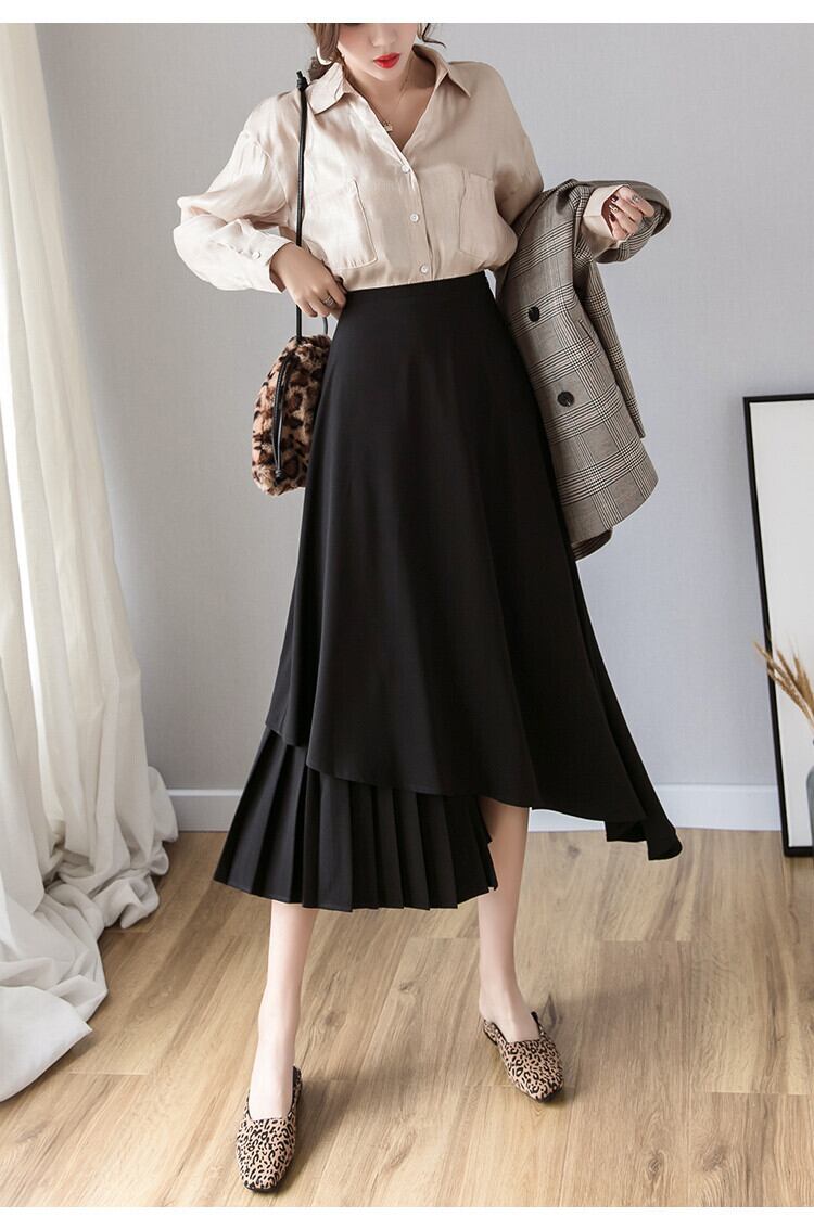 韓国ファッション 気質 ハイウエスト 裾が大きい スカート エレガント おしゃれな sweet系