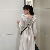 シフォン 気質 ウエスト スリム 蝶結び スカート レース 縫付 優しい ワンピース