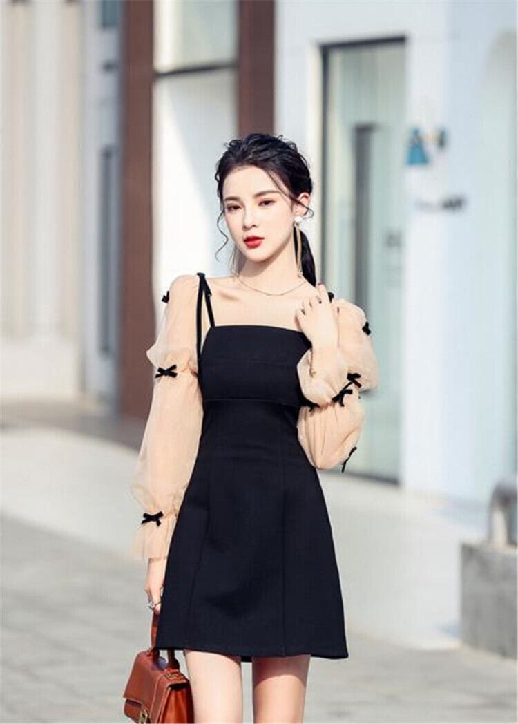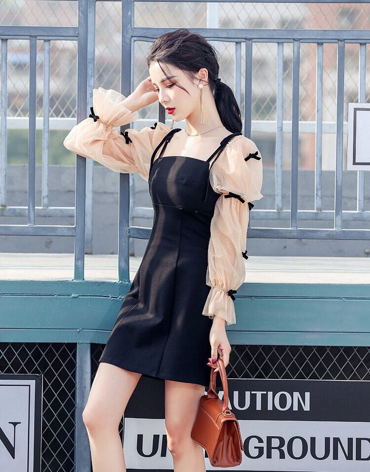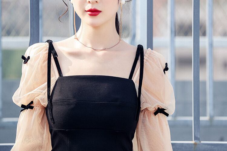 蝶結び ワンビース レーヨン 縫付 ミニスカート キャミ・ベアワンビス フェイク2ピース