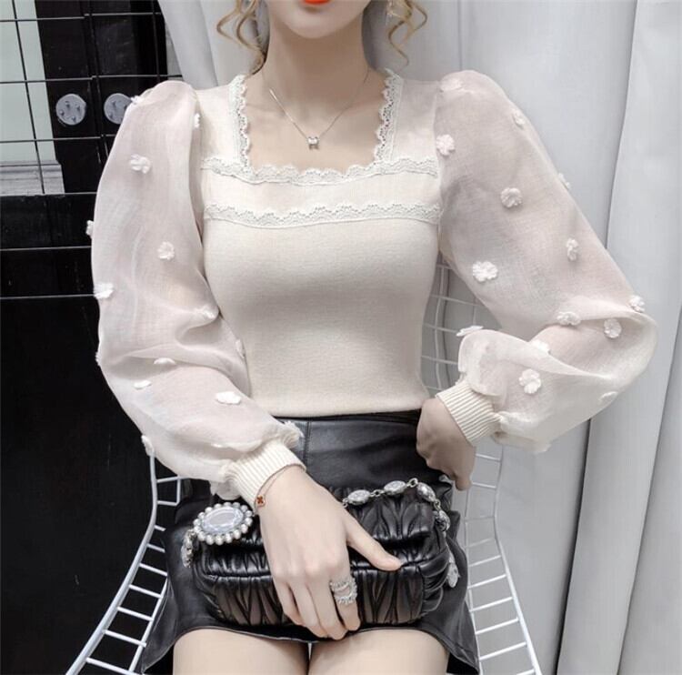 レーヨン 縫付 シフォンスリーブ ニット トップス 百掛け 大人気 トレンド スリムフィット sweet系