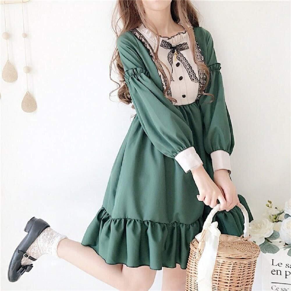 グリーン ワンピース フリーサイズ ロリータ コスプレ メイド
