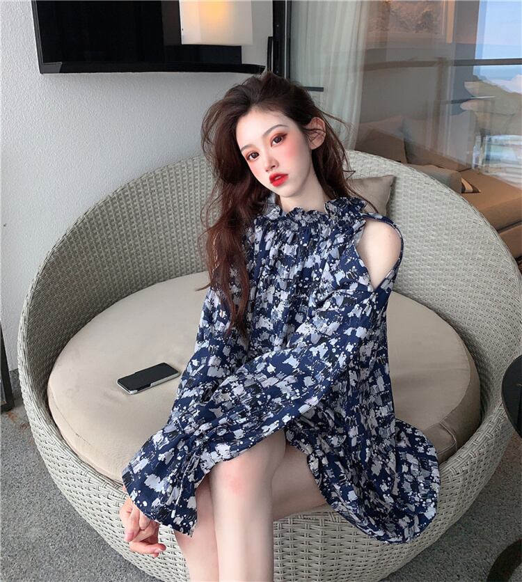 sweet系 怠惰なスカート オフショルダー 花柄ワンピ デザインセンス レトロ