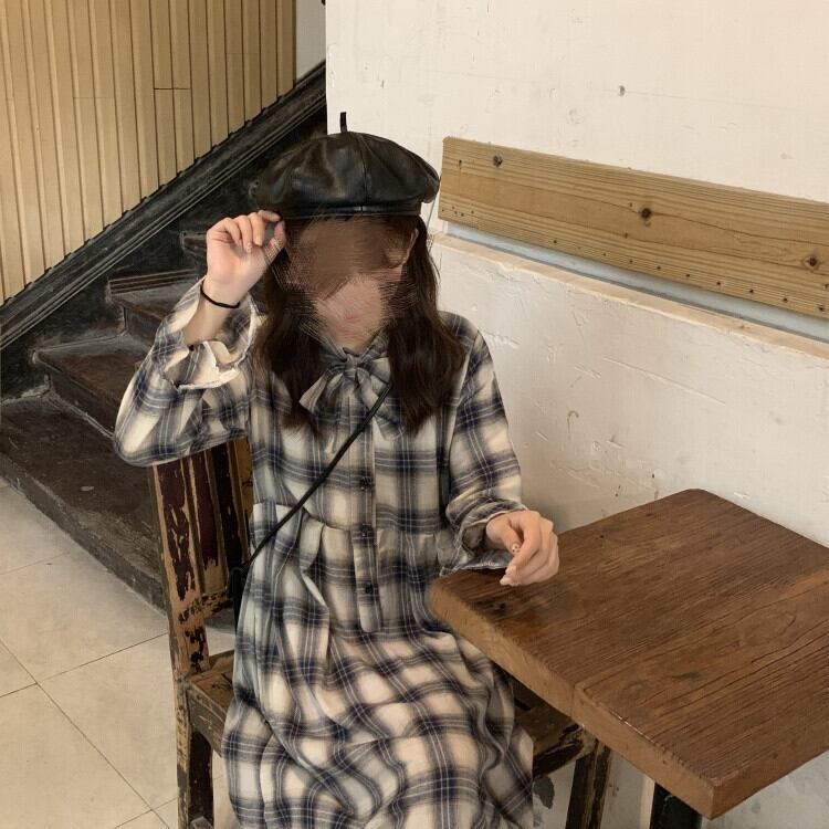 INSスタイル 新しいスタイル チェック柄 蝶結び ワンピース 原宿BF風 レトロ スリム