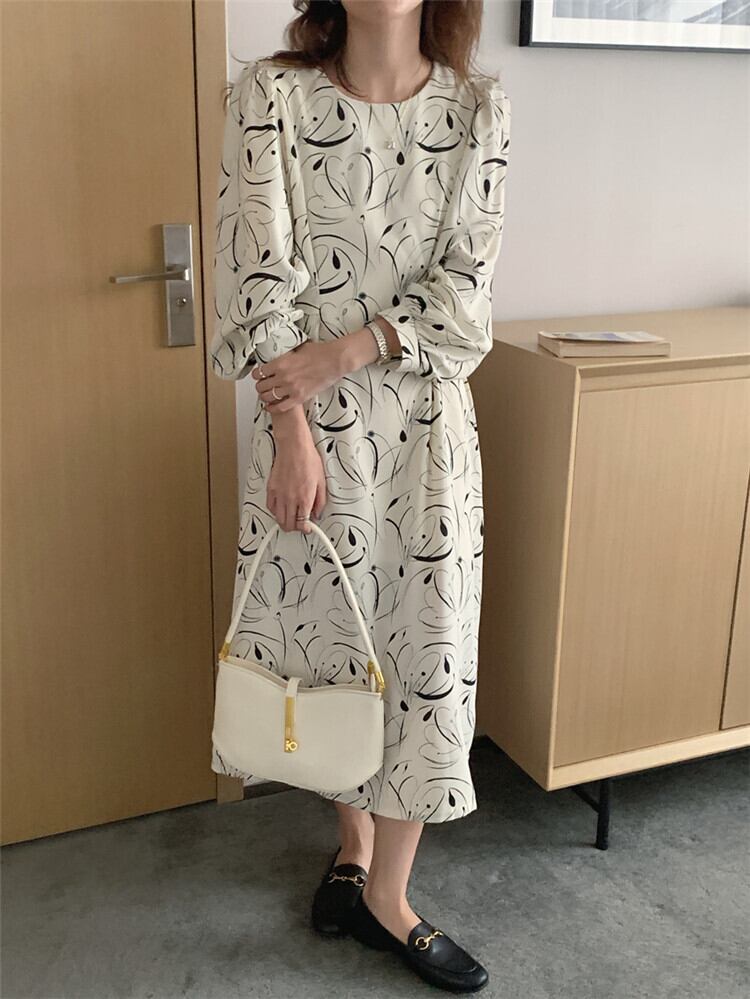 スリムフィット 長袖 レース ワンピース ロングセクション エレガント