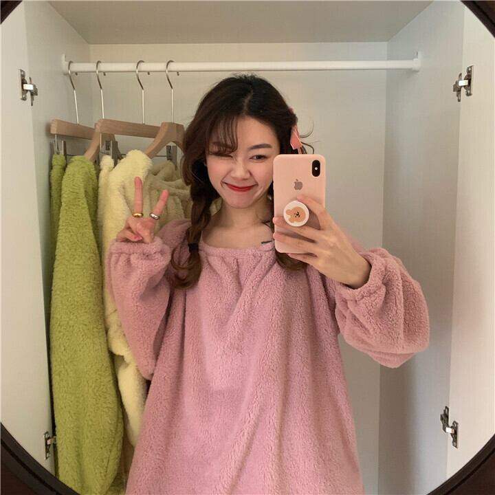 ルームウェア シンプル 怠惰な風 裏起毛 暖かい ゆったりする セット パジャマ