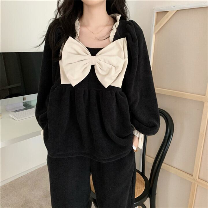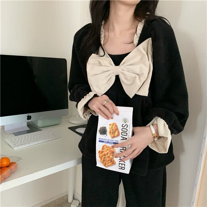 百掛け シンプル セット パジャマ 裏起毛 暖かい ルームウェア 蝶結び