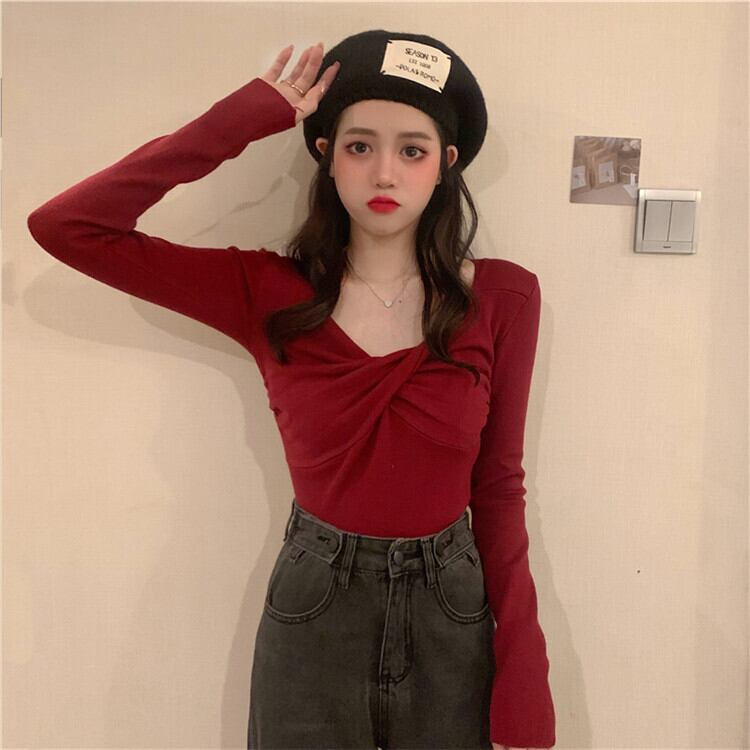 デザインセンス 交差する Vネック スリム ニットセーター エレガント シンプル