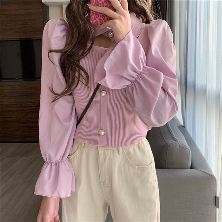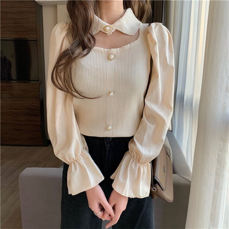 透かし彫り クラビクル デザインセンス パフスリーブ 縫付