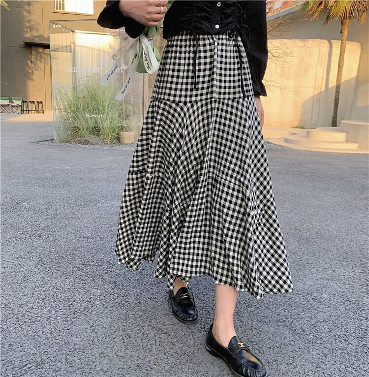 ハイウエスト チェック柄 スカート エレガント ドレープ