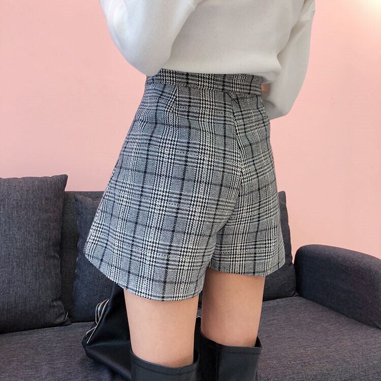 ハイウエスト スリム チェック柄 スカートパンツ イレギュラー