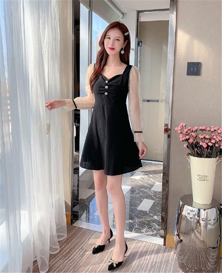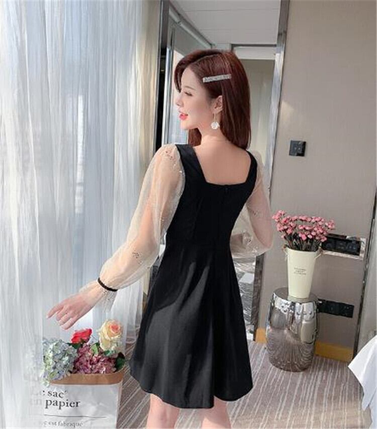 黒 Aライン ワンピース 短いスタイル 百掛け エレガント スリム 気質