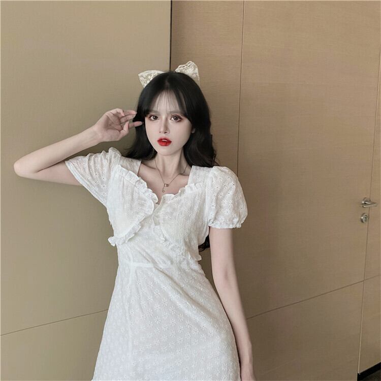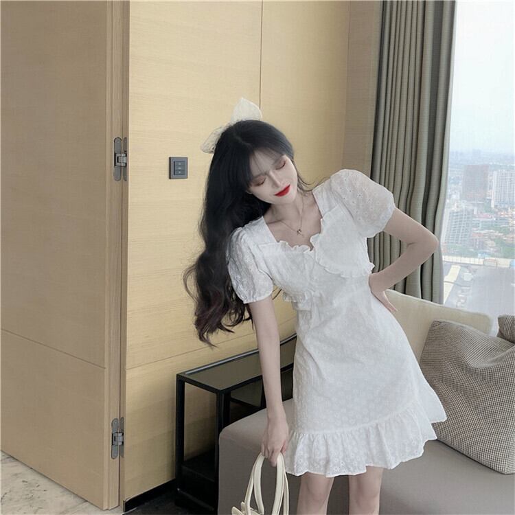 百掛け ワンピース 半袖 スクエアネック ホワイト sweet系