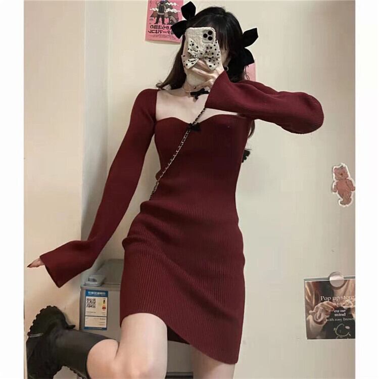 気質 オフショルダー スリム sweet系 短いスタイル 小さな赤いドレス