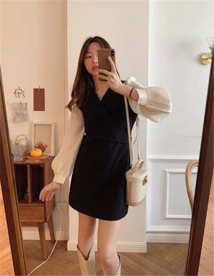 縫付 レーヨン スリム 短いスタイル ワンピース 女性 長袖