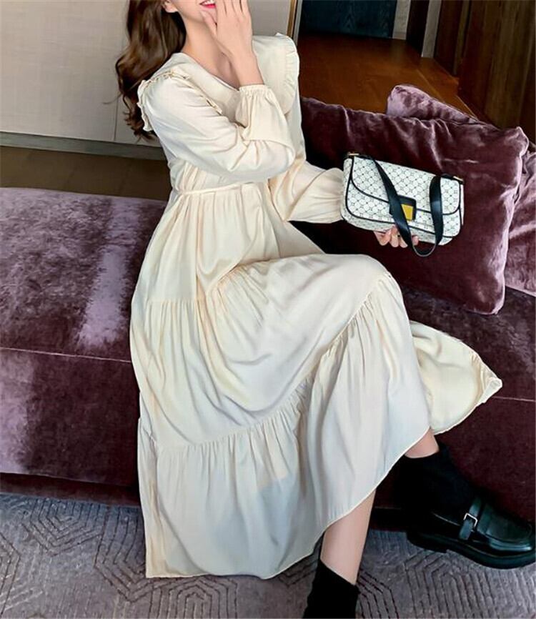 フリル 人形の襟 ワンピース 気質 ロングセクション カジュアル
