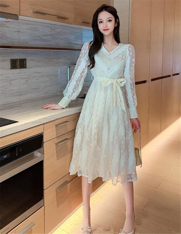 ハイウエスト 薄手 気質 フレンチスタイル ワンピース ロングスカート