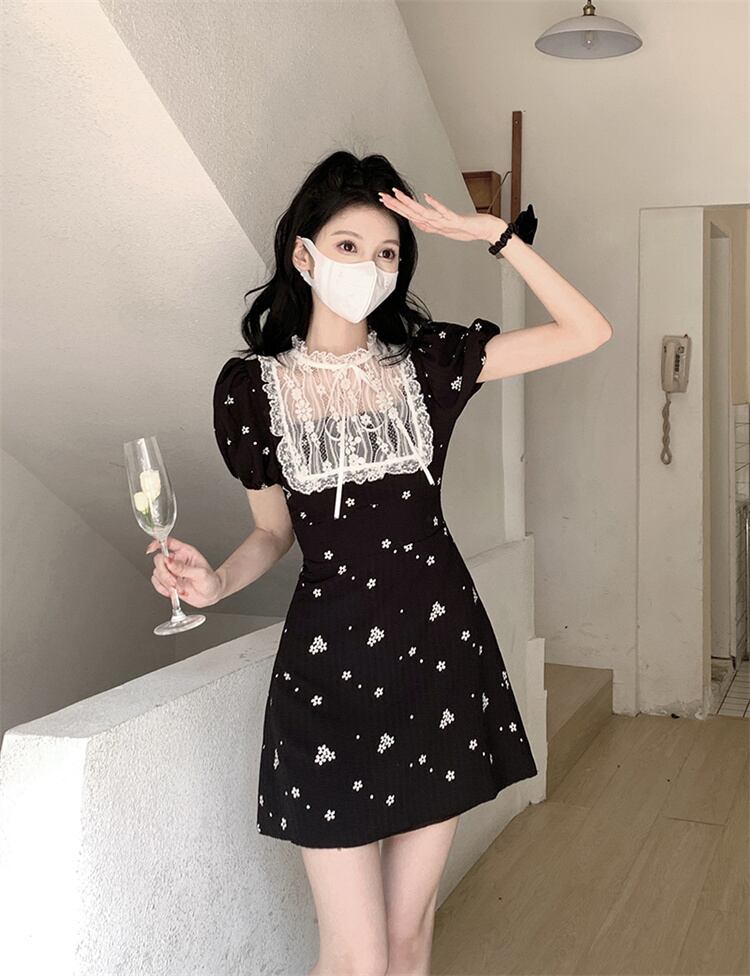 ドキドキ綺麗 韓国ファッション レース 縫付 フローラル ワンピース ジェントル ミニスカート
