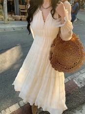 カジュアル 気質 エレガント Vネック カジュアルワンピース