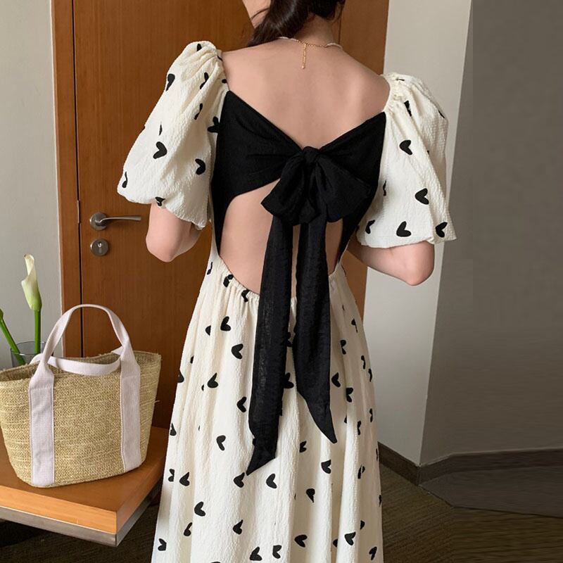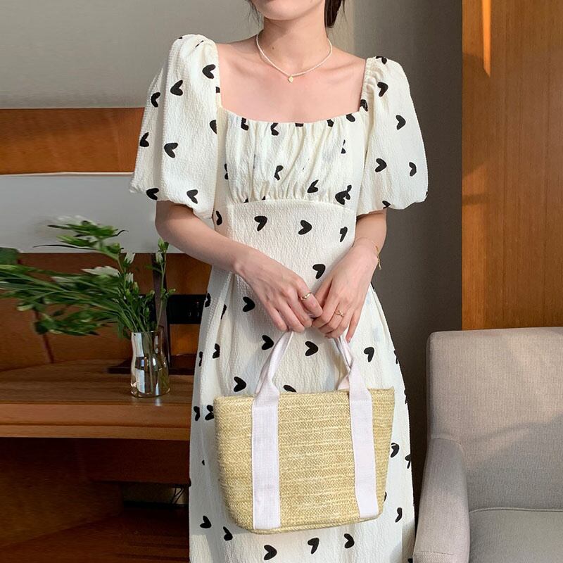 エレガント パフスリーブ スクエアネック 夏 カジュアルワンピース