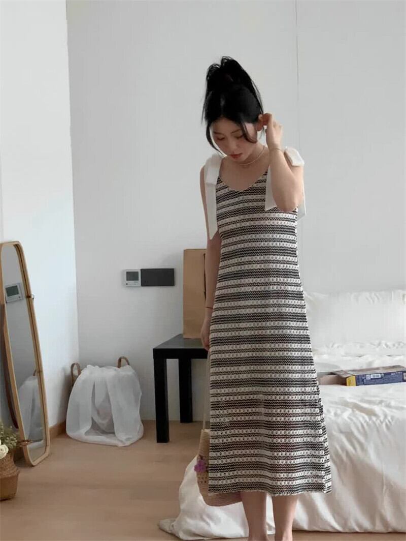 カジュアル 気質 エレガント ストライプ柄 ノースリーブ ロング ワンピース
