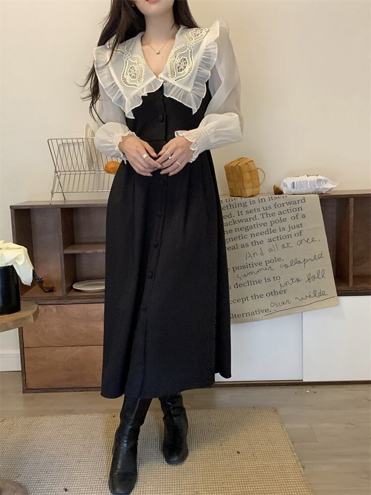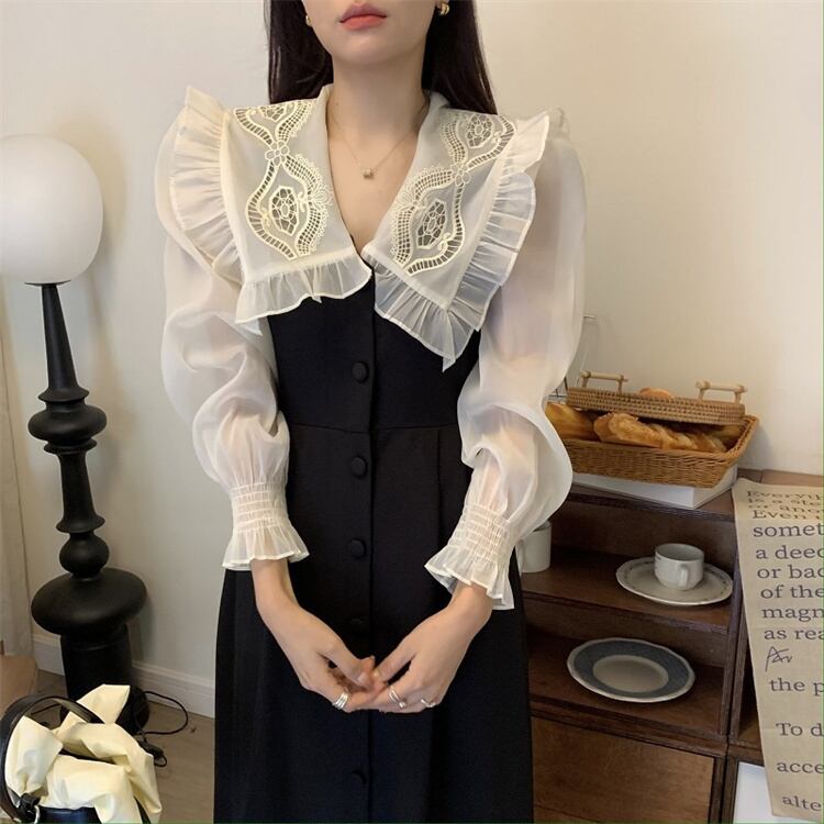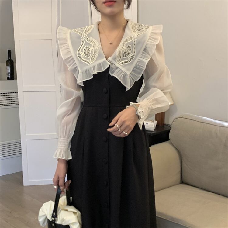 パフスリーブ ワンピース 気質 スリム レース 刺繍 sweet系 ロングスカート