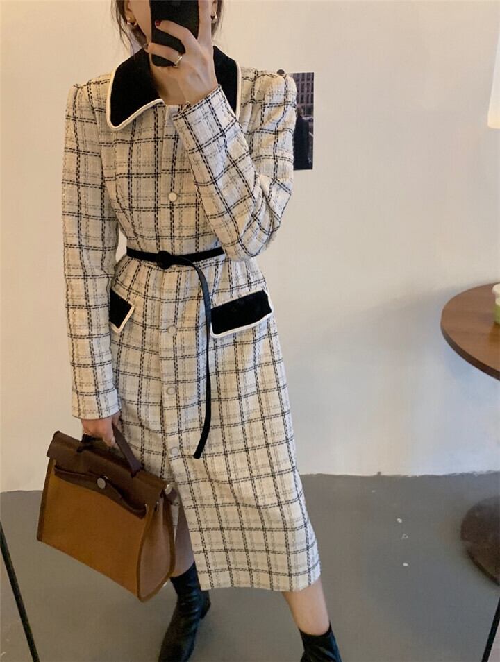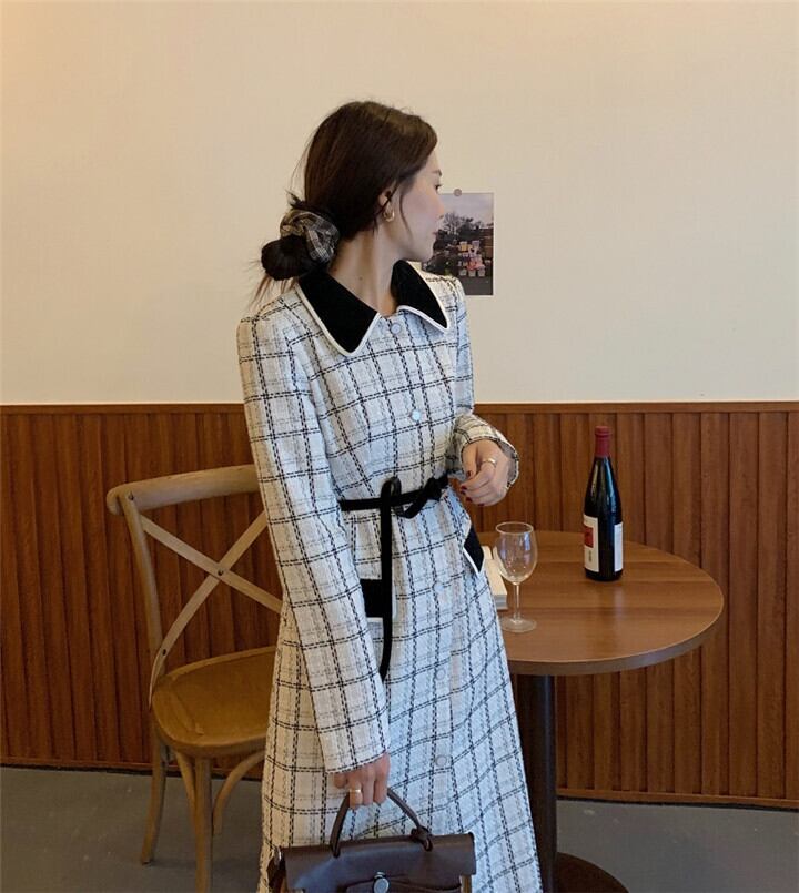 百掛け チェック柄 上品 ワンピース チェスターコート