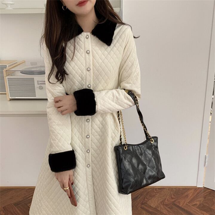 百掛け 真珠 単体ボタン ワンピース チェスターコート