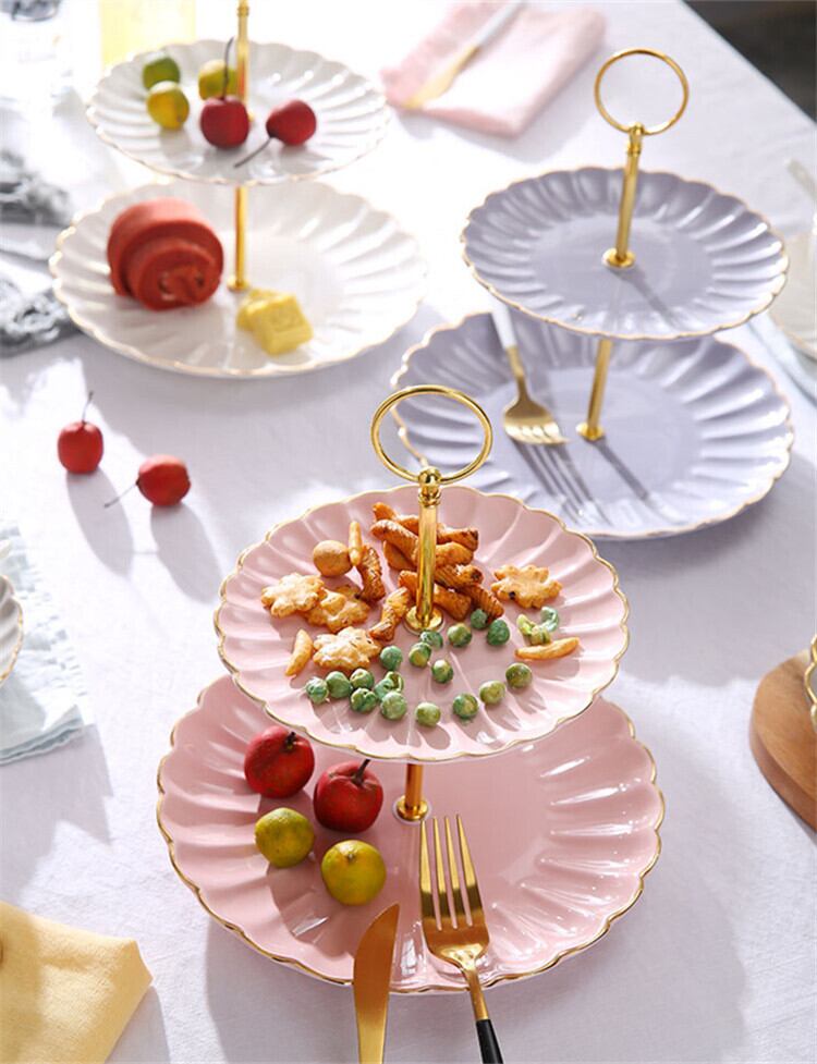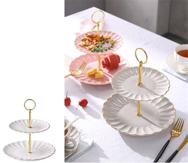ダブルレイヤー デザートプレート セラミック ライトラグジュアリー フルーツプレート